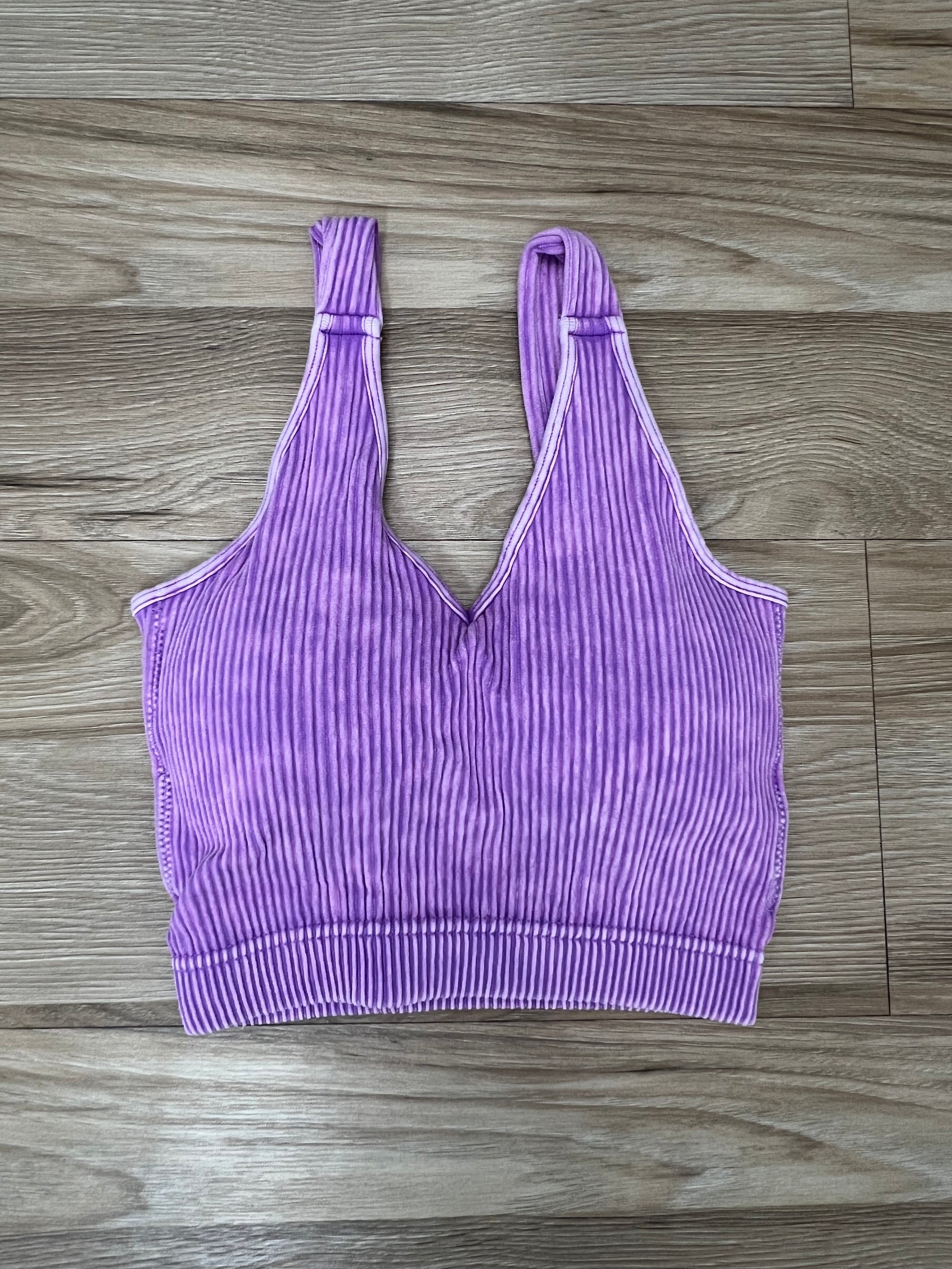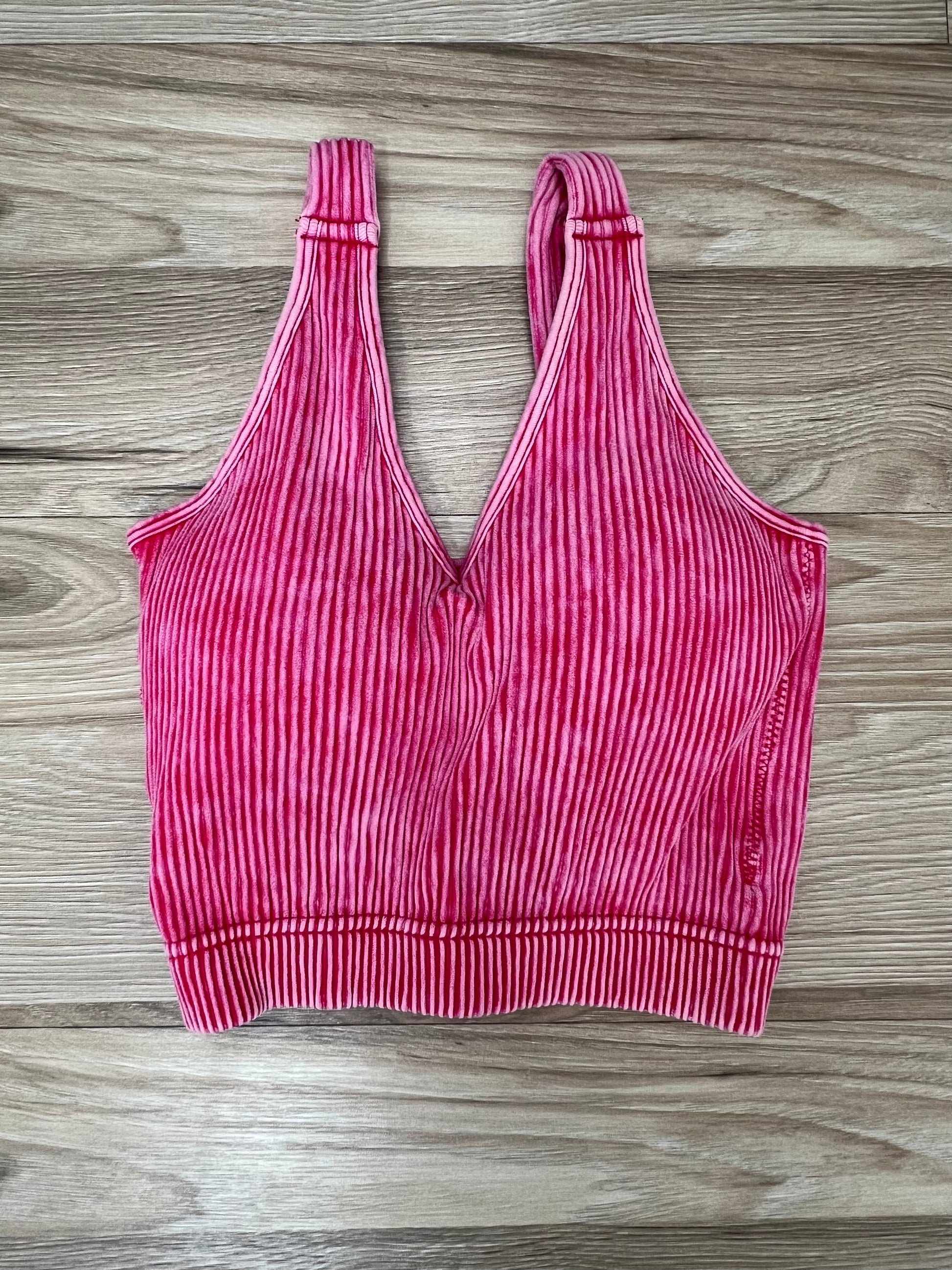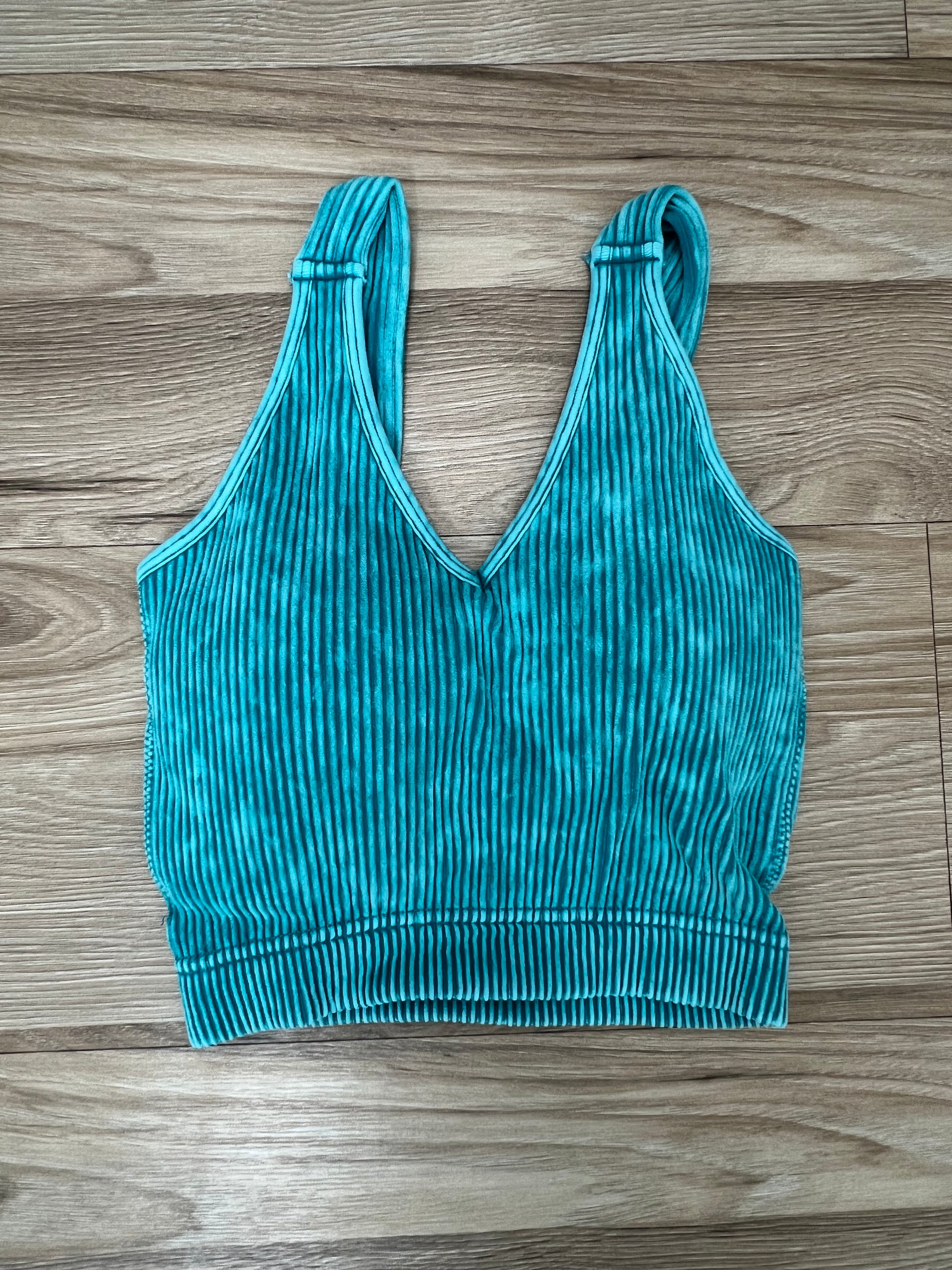 Details - Stretchy, v-neck, ribbed, removable padding, soft, tighter fitting
